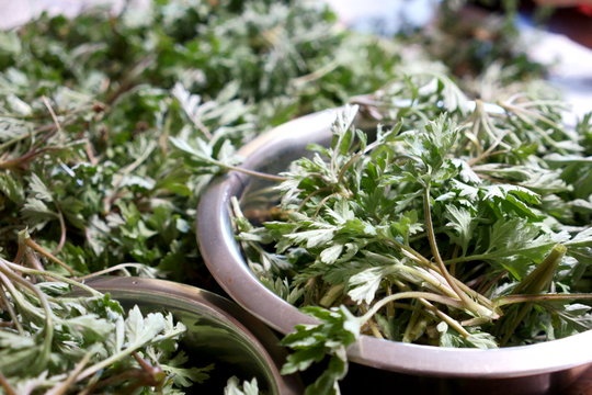 当店のよもぎ蒸しは、よもぎをメインとし、数種類のハーブからお客様の体調に合わせて調合して行います。